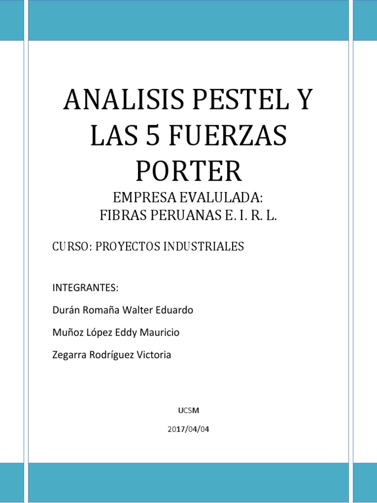 Pestel Y Porter 2 Industria Textil Peru from imgv2-2-f.scribdassets.com Pero desde 1992, especficamente el 31 de diciembre, la empresa pasa a formar. Analisis pest de empresa entel. Existen empresas peruanas de la competencia que exportan a casi todo el mundo por lo que pueden comprar los mercados de tsc y crear barreras en el resto de los paises por aver llegados a ellos. » inicio » blog » análisis pest de una empresa análisis pest de una empresa publicado el 26 abril 2010 por kaisha una de las preguntas que nos podemos hacer cuando llevamos una empresa es si hay algo que podamos hacer para influir en los. El análisis pest se puede definir como una descripción del contexto o entorno empresarial. La idea es detallar de la mejor manera el entorno en el que operará la empresa en función. Quizá pienses que para hacer un buen análisis pest es necesario reunir y manejar se trata de una técnica básicamente descriptiva. Es para que tengas una referencia y.