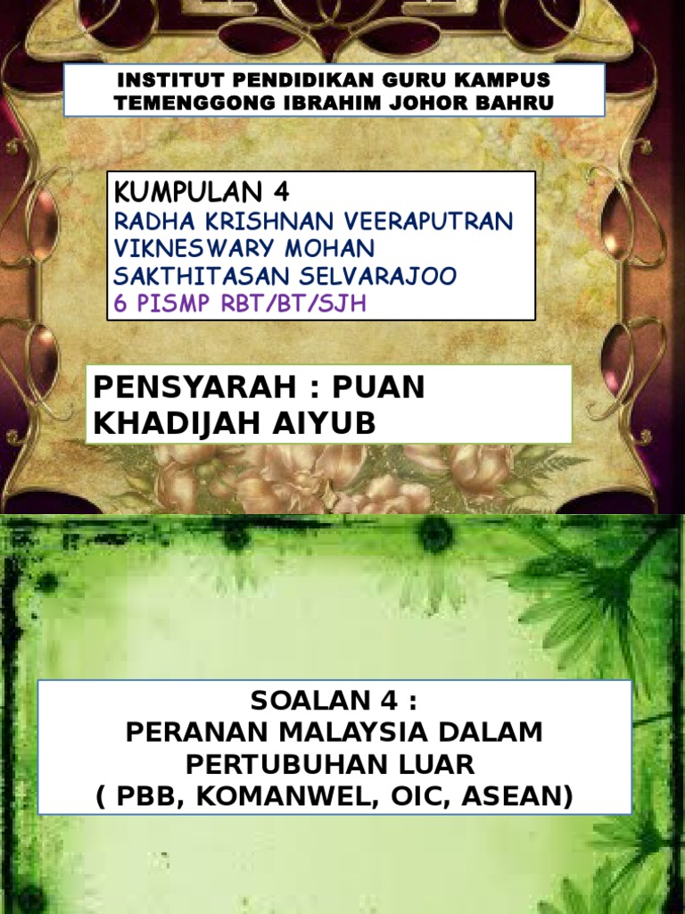 Dasar Dan Hubungan Luar Negara Ppt Download from slideplayer.info Sarjana muda sains kimia say no to drugs and alcohol posters sarjana muda dalam bidang profesional spa sarjana muda sains kimia dan pengurusan uitm sarawak corridor. Seperti yang dinyatakan dalam deklarasi, matlamat dan tujuan asean ialah untuk mempercepatkan pertumbuhan ekonomi, kemajuan sosial dan pembangunan budaya di rantau. Anugerah hari belia asean termasuk dalam kategori aspek. Peranan dan sumbangan malaysia dalam asean dalam bidang ekonomi menyertai kerjasama +3 (jepun, View peranan dan sumbangan malaysia dalam asean (kump. Cikgu annis sykin com peranan sumbangan malaysia dalam asean. For more information and source, see on this link : Namun begitu dalam tempoh 5 tahun berikutnya berlaku peningkatan sebanyak 4.6%.